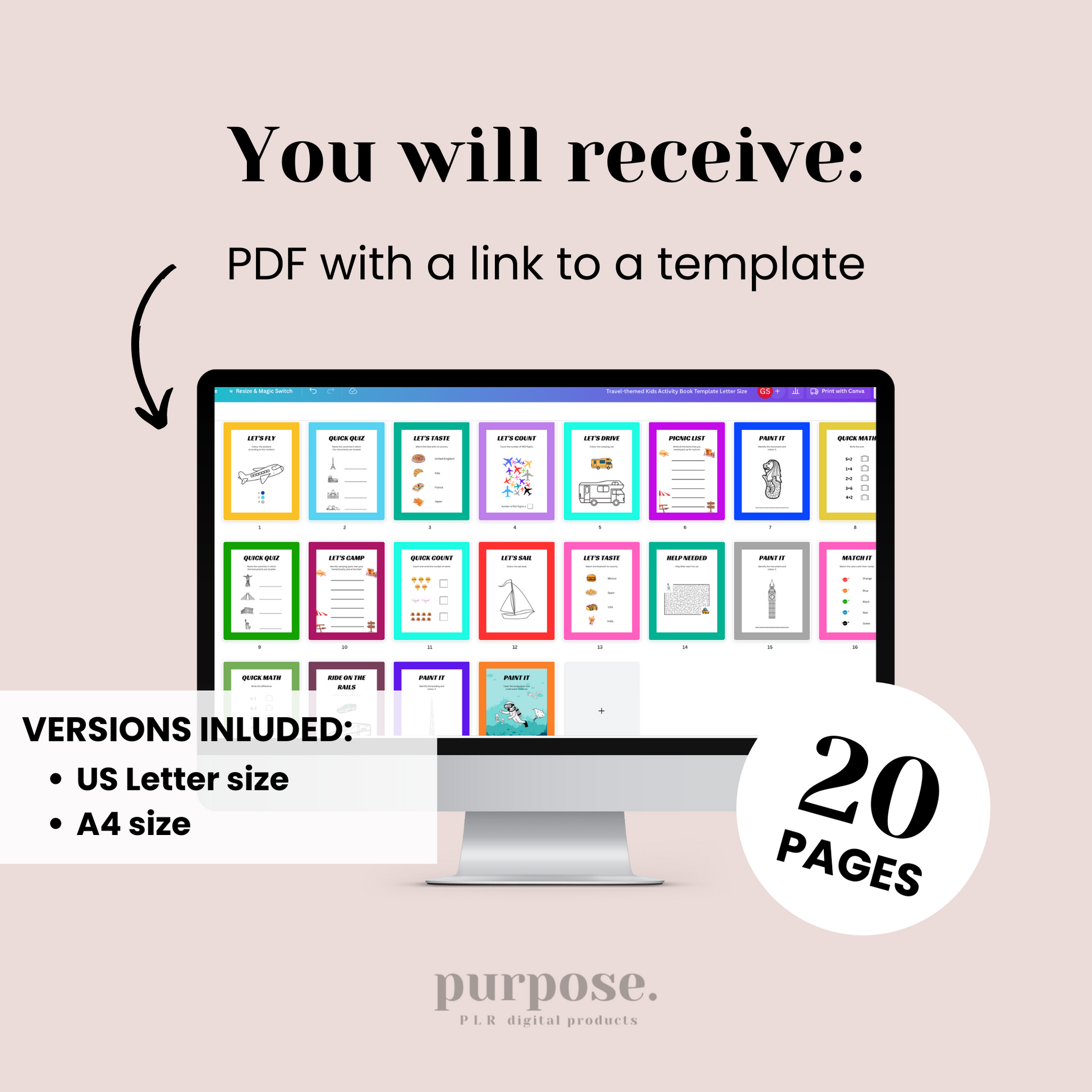 We provide 1 Canva template (20 pages) in following sizes: US letter (8.5 x 11 in) and A4 (210 x 297 mm)