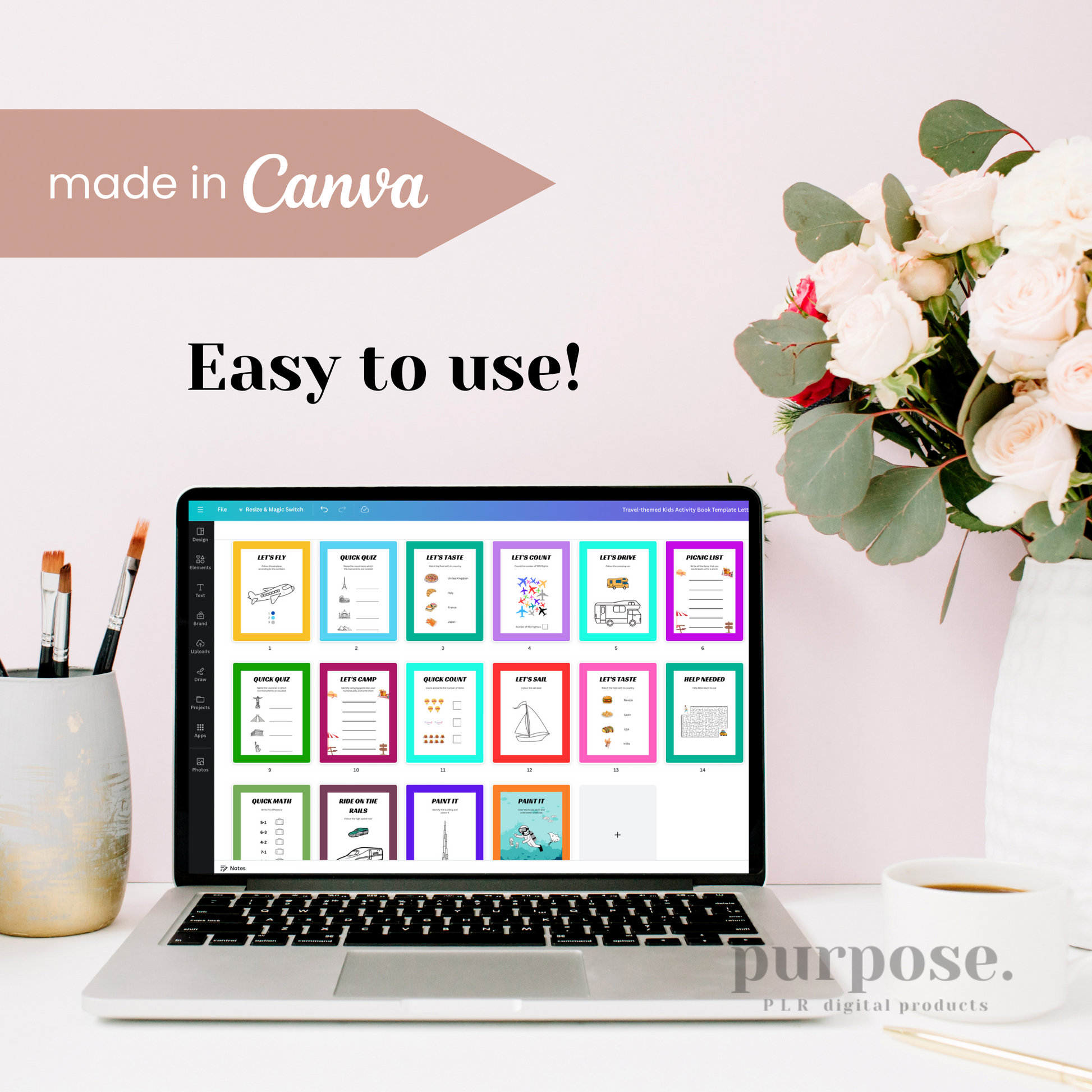 This Travel-themed Kids Activity Book template will help you to easily create an in demand product for your digital product shop.
